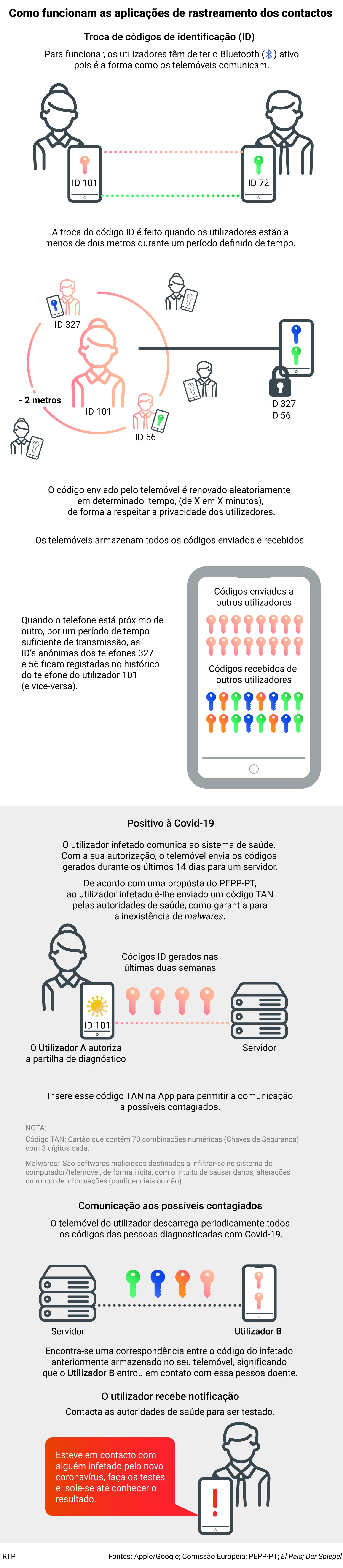 Até agora, o rastreamento de contactos de cada doente com Covid-19 nos vários países tem sido feito manualmente pelas autoridades de saúde pública, que entrevistam os infetados para determinar com quem estiveram em contacto a partir das 48 horas anteriores ao aparecimento de sintomas. Para além de demorado, este processo não é 100 por cento eficaz, uma vez que depende da memória dos pacientes sobre com quem se cruzaram e durante quanto tempo.