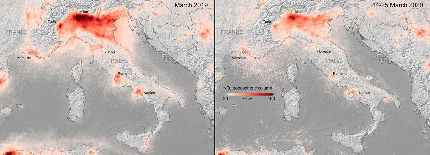 Em Itália, também se verificou uma drástica redução da poluição, maioritariamente notória no norte do país.