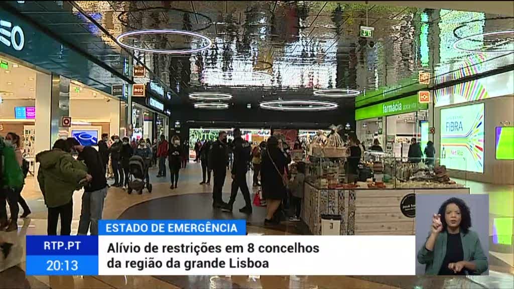 Alivio em oito concelhos da zona da grande Lisboa. Levantadas as medidas de confinamento, pela primeira vez antes do Natal foi uma correria às compras e centros comerciais.