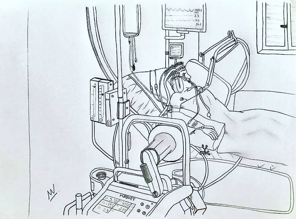No pouco tempo livre que tem, desenha num caderno imagens dos doentes e colegas médicos e enfermeiros. Uma espécie de desabafo no papel perante as dificuldades e o desalento.