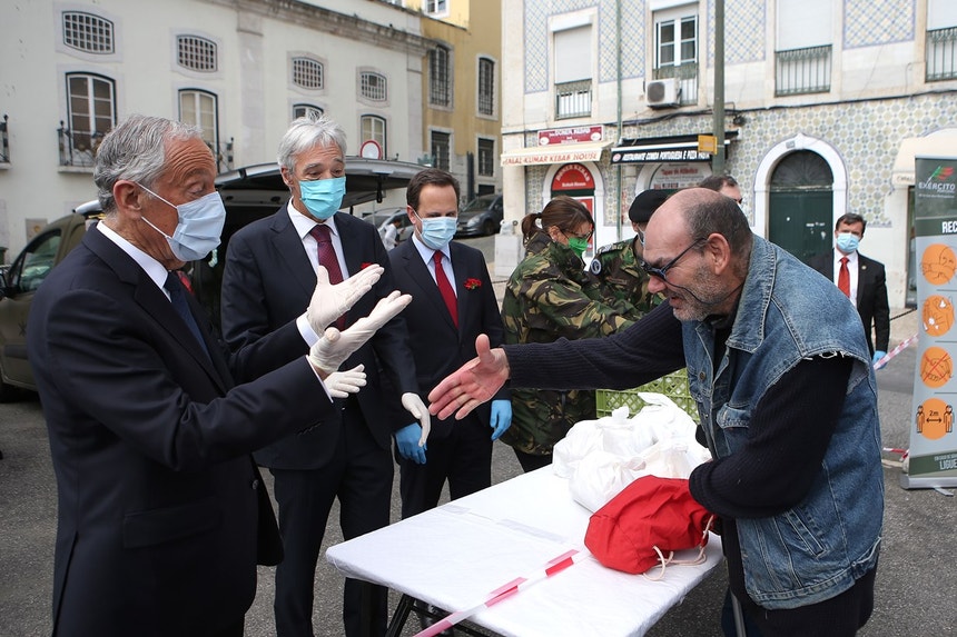 Depois da cerimónia do 25 de Abril no Parlamento, o Presidente da República participou na distribuição de alimentos pelos sem-abrigo nas ruas de Lisboa. As Forças Armadas estão no terreno a ajudar na entrega de refeições.
