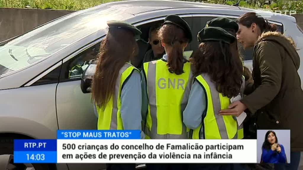 Em Famalicão, 500 crianças do concelho vestem as fardas das autoridades. Em operações STOP, alertam e aconselham os condutores a denunciar situações e explicam também porque é que um laço azul simboliza esta luta.