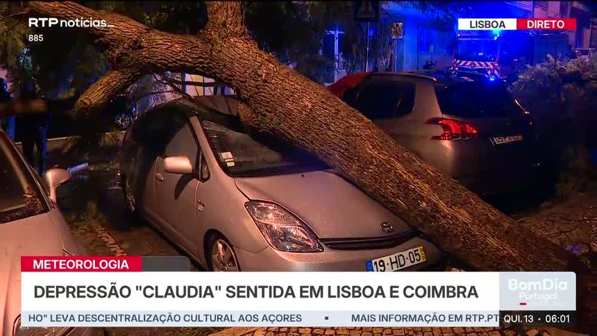 Portugal continental e o arquipélago da Madeira estão a ser afetados desde quarta-feira pelos efeitos da depressão Claudia com chuva, vento e agitação marítima fortes, que se prolongará nas próximas horas.