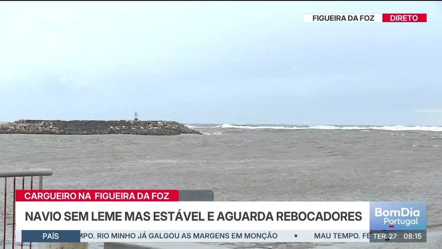 O cargueiro que se encontrava à deriva, à saída da barra da Figueira da Foz, está estável e a ser acompanhado pela Marinha. A bordo permanecem seis tripulantes.