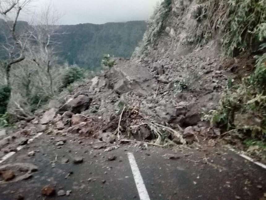Ocorreu esta quarta-feira uma derrocada na estrada regional que dá acesso às freguesias de Fajã Grande e Fajãzinha, na ilha açoriana das Flores.