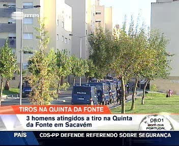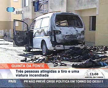 Na Quinta da Fonte, em Sacavém, três pessoas foram atingidas a tiro e uma viatura foi incendiada, segundo fonte da PSP tratou-se de um confronto entre grupos rivais na zona da Apelação.