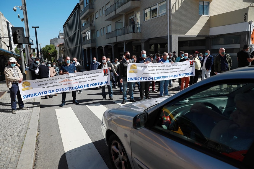 Cerca de 50 trabalhadores da empresa Soares da Costa concentraram-se esta terça-feira diante do Tribunal do Comércio de Vila Nova de Gaia (Porto) e cortaram o trânsito na Avenida da República em protesto contra salários em atraso.