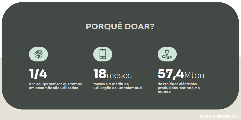 Desde o início da plataforma www.ondedoar.pt, gerida pelo Electrão, já foram distribuídos mais de 38 mil artigos, totalizando mais de 20 toneladas. Só no ano passado este projeto inovador, que promove a economia circular, previne a geração de resíduos e possui um forte impacto social, beneficiou diversas instituições, conseguindo recolher mais de dez toneladas de produtos.
