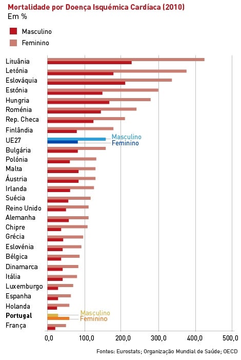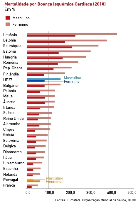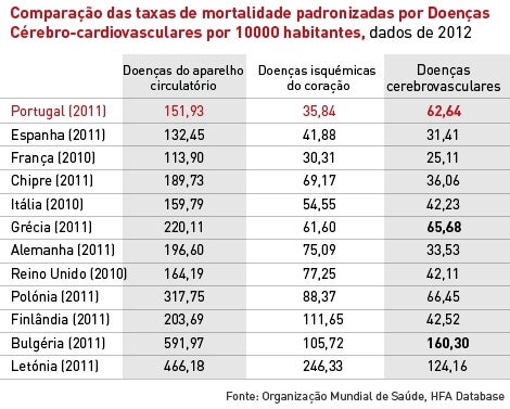 Na análise comparativa, merece ser destacada a posição privilegiada de Portugal da mortalidade por doença isquémica cardíaca, muito abaixo da média da União Europeia.