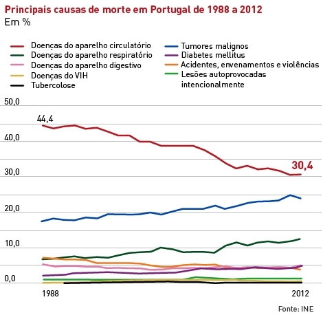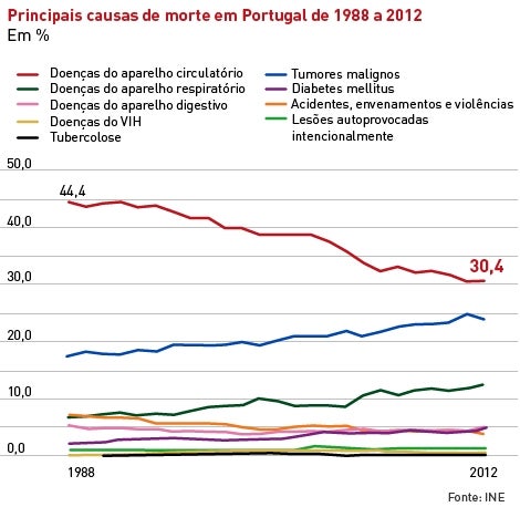 principal causa de morte em Portugal. Em 1988 a taxa foi de 44, 4 por