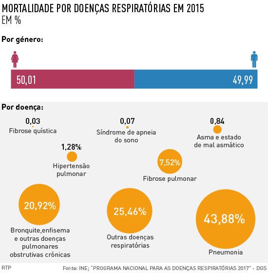 O relatório do Programa Nacional para as Doenças Respiratórias 2017 revela que as doenças respiratórias crónicas têm sido uma das principais causas de mortalidade, com tendência para um agravamento da situação. As pneumonias constituem a principal causa de mortalidade por doença respiratória.