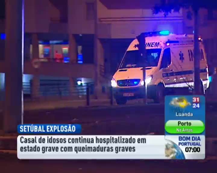 Dois dos feridos na explosão num prédio de Setúbal estão em estado grave. Os dois idosos viviam no apartamento dos rés-do-chão onde se deu a explosão e sofreram queimaduras graves. Um foi transportado para o Hospital Garcia de Orta, em Almada, o outro encontra-se no Hospital de São José, em Lisboa. A explosão, seguida de incêndio, provocou também 12 feridos ligeiros, por inalação de fumos. Os moradores do prédio de Setúbal onde houve uma explosão foram autorizados a regressar a casa.