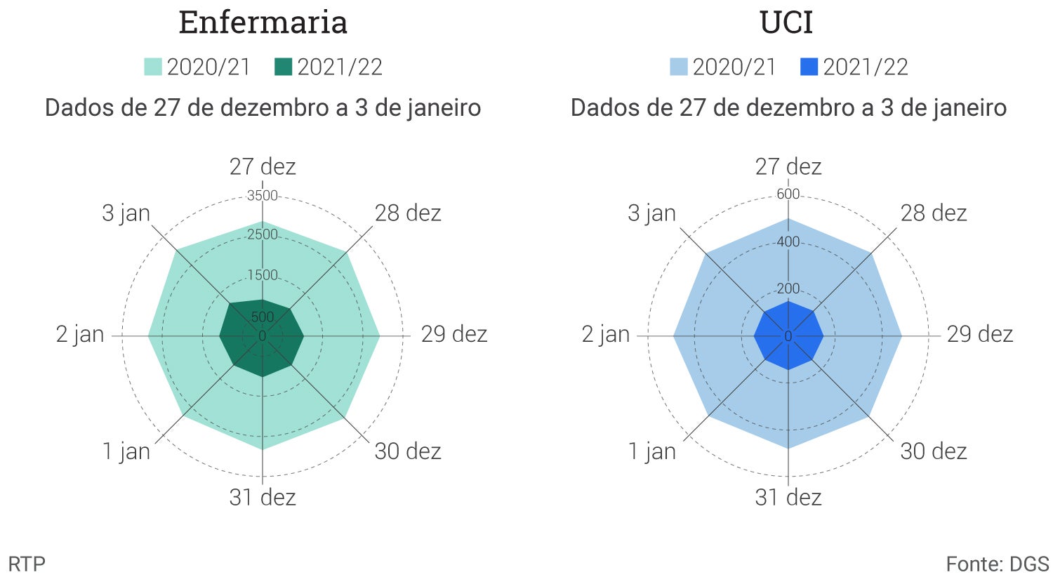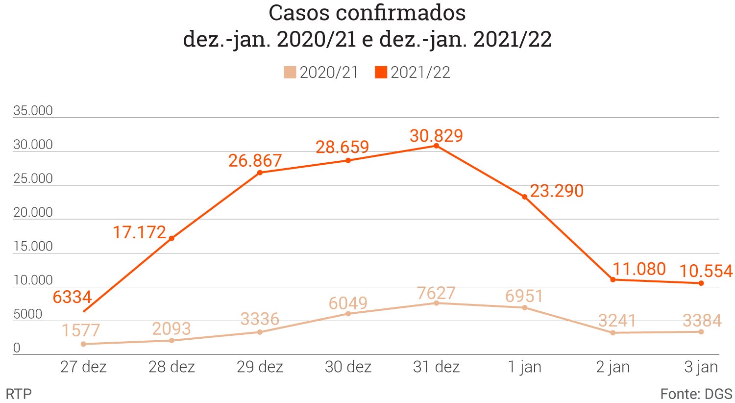 Os números geram apreensão entre os peritos e decisores, até porque noutras fases da pandemia a explosão no número de casos só se refletiria semanas mais tarde nos internamentos e óbitos, e no final de dezembro de 2020, os números de novas infeções eram muito menos significativos do que os registados nesta viragem do ano.
