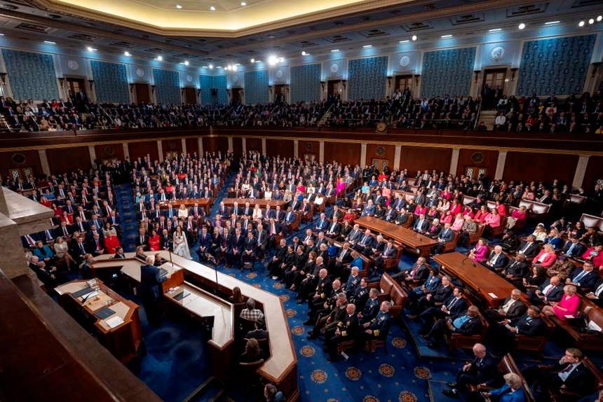 Um discurso muito aplaudido pelos republicanos, e muito contestado pelos membros do partido democrata, que estavam no Congresso, a assistir.