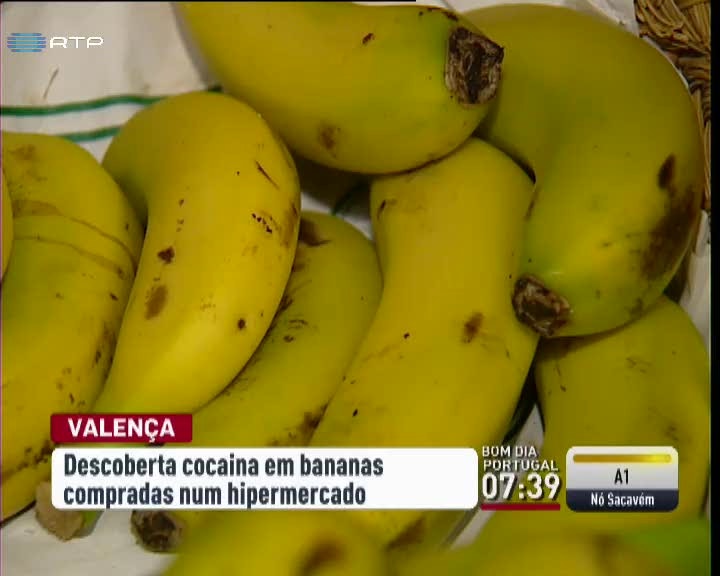 Um cliente do supermercado Lidl em Valença, no Minho, detetou droga numa caixa de bananas. O alerta foi dado à PJ, que conseguiu recuperar em sete supermercados daquela cadeia, todos no norte do país, 237 quilos de cocaína distribuídos por sacos no fundo das caixas. O valor da droga apreendida é de 135 mil euros.