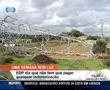 "A EDP fez tudo o que estava ao seu alcance, mas não estava preparada para uma situação destas porque devia ter colocado mais geradores", sublinhou, acrescentando que tal como as seguradoras que vão cobrir os prejuízos de habitações ou as câmaras que tiveram de desobstruir estradas, "também a EDP devia assumir as suas responsabilidades".