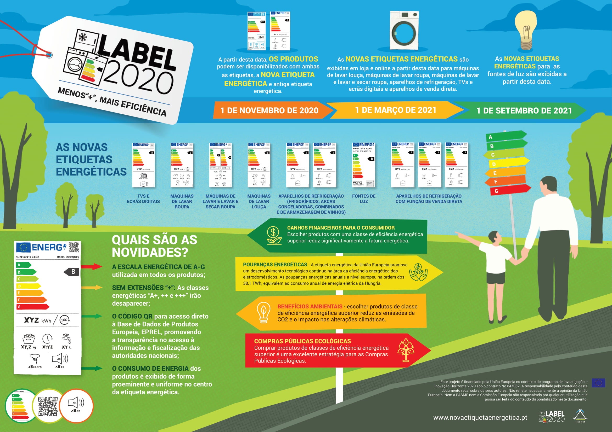 Há muito que as organizações de consumidores, entre as quais a DECO Proteste, reivindicam uma nova etiqueta energética junto da União Europeia. A nova legislação comunitária foi ao encontro destas solicitações e reformula as etiquetas, eliminando na apresentação visual com as classes A+, A++ e A+++, passando a etiqueta a apresentar uma escala mais simples, A (mais eficiente) a G (menos eficiente).