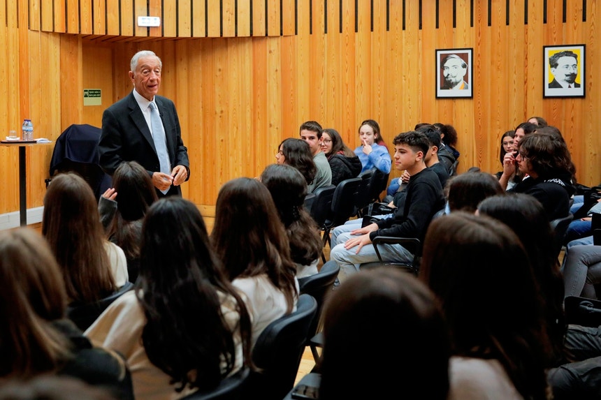 O Presidente da República deu uma aula debate com alunos dos 10.º e 12.º anos da Escola Secundária Domingos Sequeira, em Leiria.