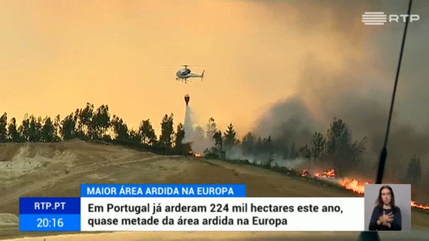 Portugal está no topo da lista de países da União Europeia com mais área ardida este ano. Com 224 mil hectares de mato e floresta queimados, tem quase metade do total de território afetado por incêndios.