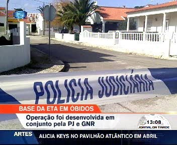 A polícia portuguesa encontrou "abundante material explosivo" numa vivenda perto de Óbidos, que teria sido alegadamente abandonada por membros da organização terrorista basca ETA. Além de material explosivo foi encontrado na habitação equipamento usado para o fabrico de bombas, como detonadores e outro material eléctrico.