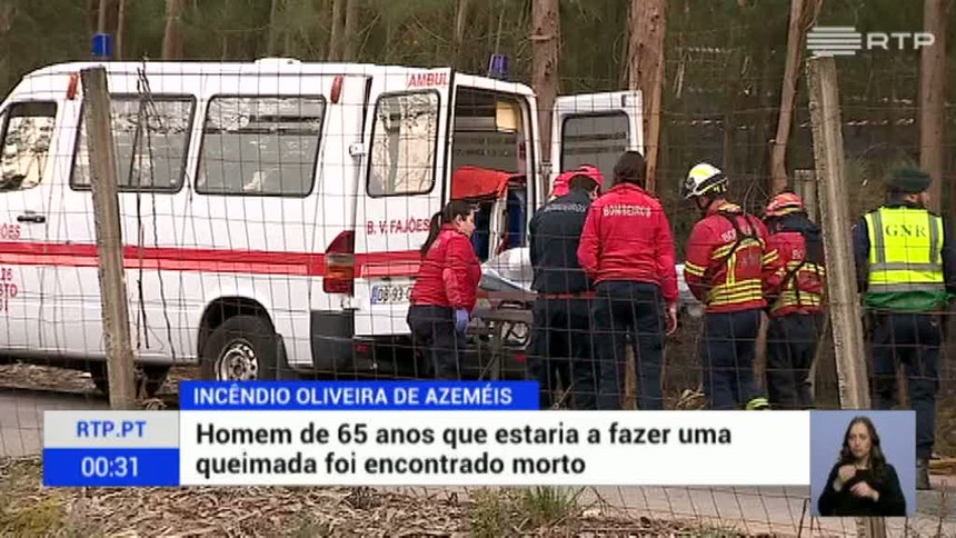 Uma pessoa morreu num incêndio florestal em Macieira de Sarnes, Oliveira de Azeméis. A vítima, um homem de 65 anos, foi encontrada pelos bombeiros já sem vida. Estaria a fazer uma queima no próprio terreno, quando foi apanhado por uma mudança do vento.