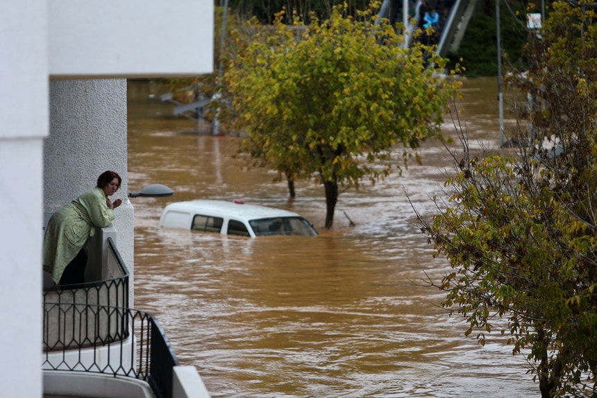Casas e estabelecimentos comerciais foram completamente inundados. A força das águas arrastou também automóveis, alguns até à praia.