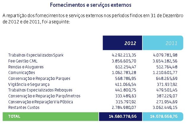 O movimento MaisLisboa questionou ainda a subconcessão das tarefas da EMEL na Spark. Uma empresa, que segundo o relatório e contas da EMEL, em 2012, recebeu por “trabalhos especializados Spark” mais de 4,2 milhões de euros, num aumento de mais de 200 mil euros de 2011 para 2012.