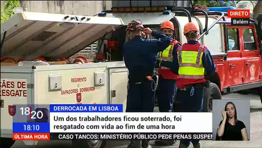 O trabalhador mais velho foi de imediato retirado e hospitalizado no Hospital São Francisco Xavier. O Regimento dos Sapadores Bombeiros de Lisboa conseguiu resgatar com viva o homem mais novo, que estava consciente e cooperante apesar dos ferimentos.