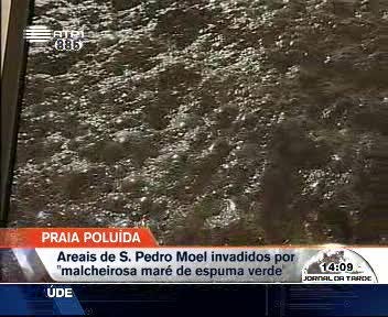 As praias de São Pedro de Moel foram invadidas por uma maré de espuma verde. Os banhistas suspeitam que a poluição tenha sido causada por descargas industriais no mar.