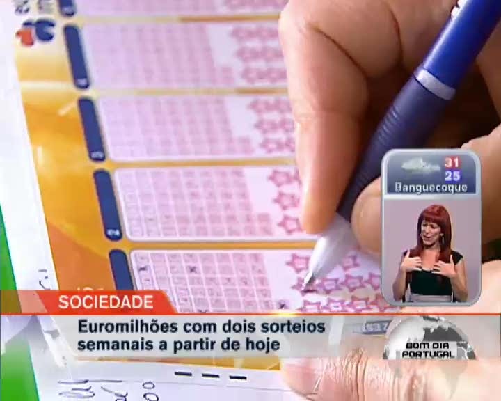 Começa hoje o novo sorteio do Euromilhões. Mais um por semana. Para além de sexta-feira os apostadores poderão apostar também às terças-feiras. João Gonçalves, diretor de marketing da Santa Casa da Misericórdia, esteve esta manhã na RTP a explicar como funciona esta nova aposta no Euromilhões.