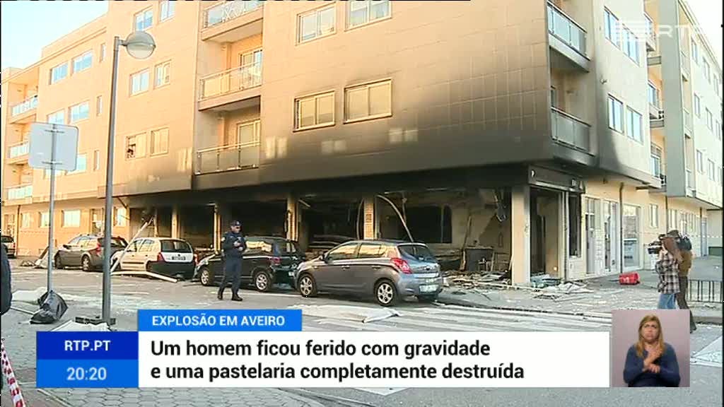 Uma explosão seguida de incêndio destruiu uma pastelaria, durante a madrugada, em Esgueira, Aveiro. A explosão fez um ferido grave, que foi encontrado a um quilómetro do local do rebentamento.