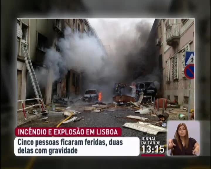 Um explosão violenta, seguida de incêndio, provocou 5 feridos esta manhã, em Campolide, em Lisboa. Duas das vítimas sofreram ferimentos graves. O fogo começou num armazém com móveis e provocou danos noutros edifícios e também em alguns carros.