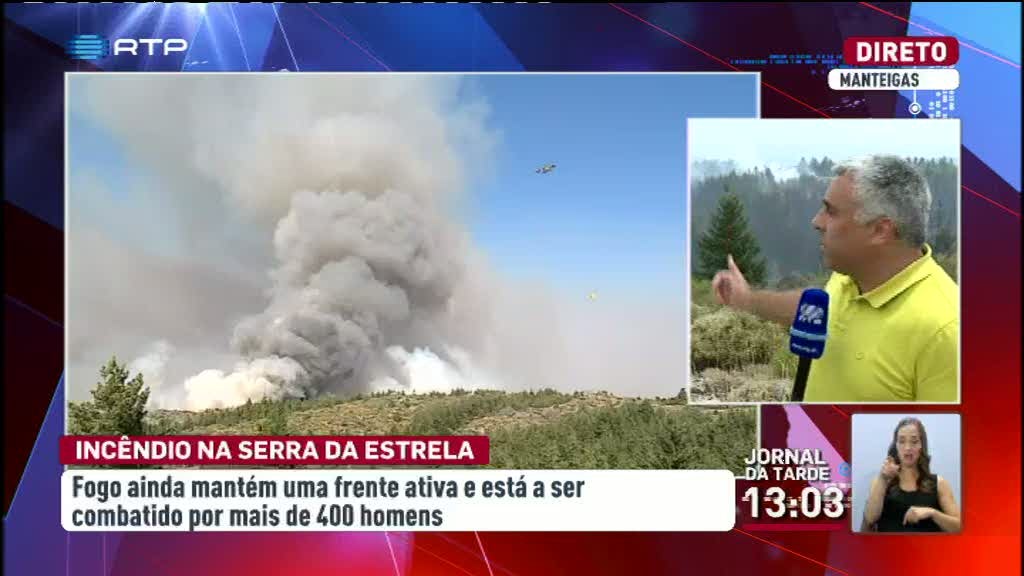 Mais de 400 homens e meios aéreos estão a combater as chamas no Parque Natural da Serra da Estrela, um trabalho complicado pela falta de acessos.