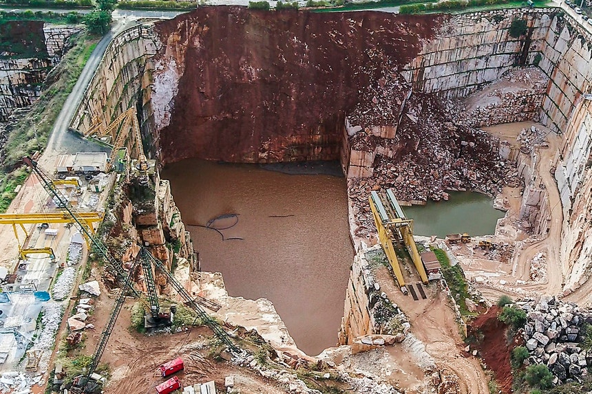 O deslizamento de um grande volume de terras e o colapso de um troço da estrada entre Borba e Vila Viçosa, no distrito de Évora, para o interior de poços de pedreiras ocorreu na segunda-feira às 15h45.