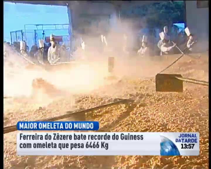 Ferreira do Zêzere conseguiu ontem confecionar a maior omeleta do mundo, utilizando sete toneladas de ovos. O antigo recorde era turco e para o bater foi necessário o esforço de 140 voluntários e uma frigideira gigante.