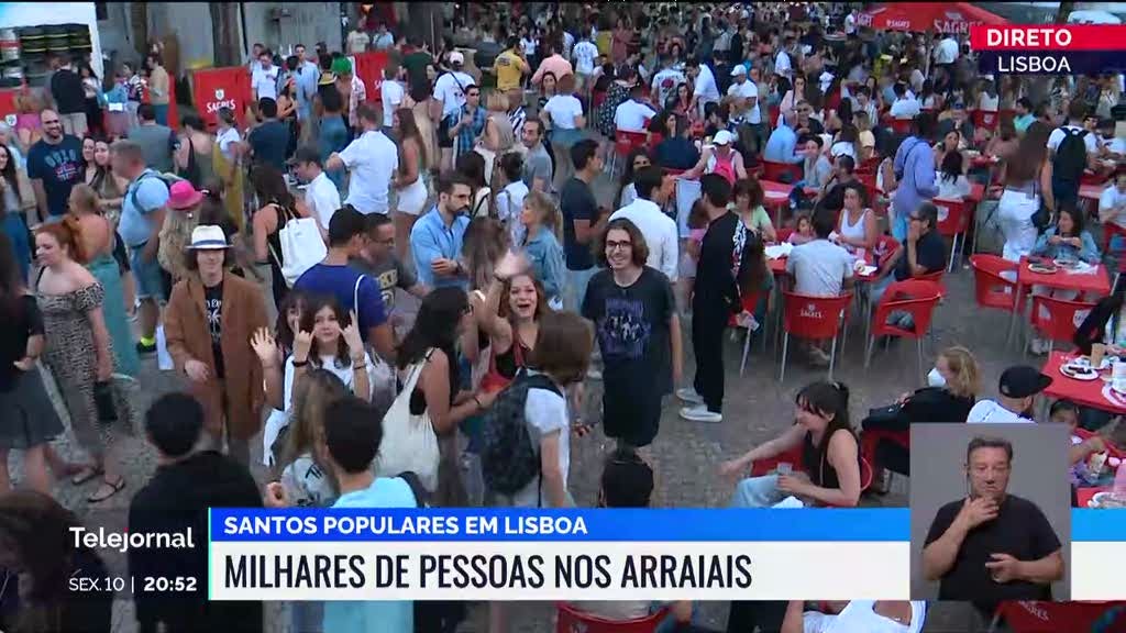 A capital portuguesa está em festa este fim de semana. Desde o final da tarde, diversos arraiais reúnem locais e turistas. É o regresso das sardinhas, bifanas, musica e dança depois de dois anos, já que em 2020 e 2021 as festas de lisboa foram canceladas devido à pandemia.