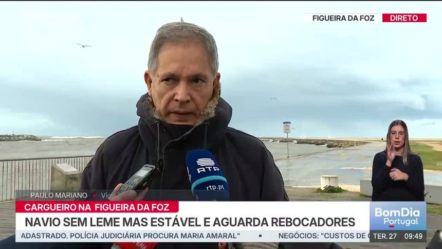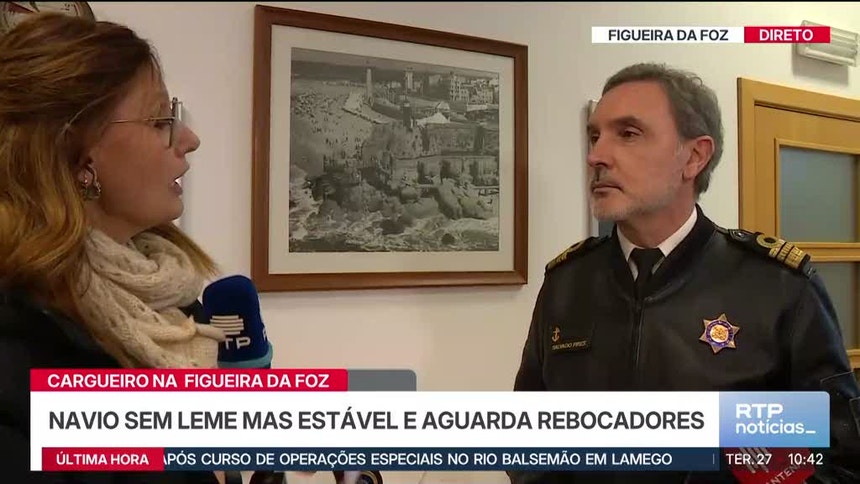 A tripulação do navio continua “a tentar manter o navio à tona da água, porque não têm leme”, afirmou esta manhã o vice-presidente da Comunidade Portuária da Figueira da Foz.