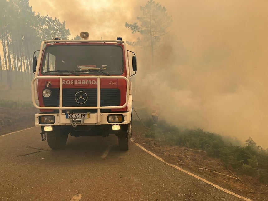 Fogo cerca carro dos bombeiros de Pinhel e deixa condutor com queimaduras graves