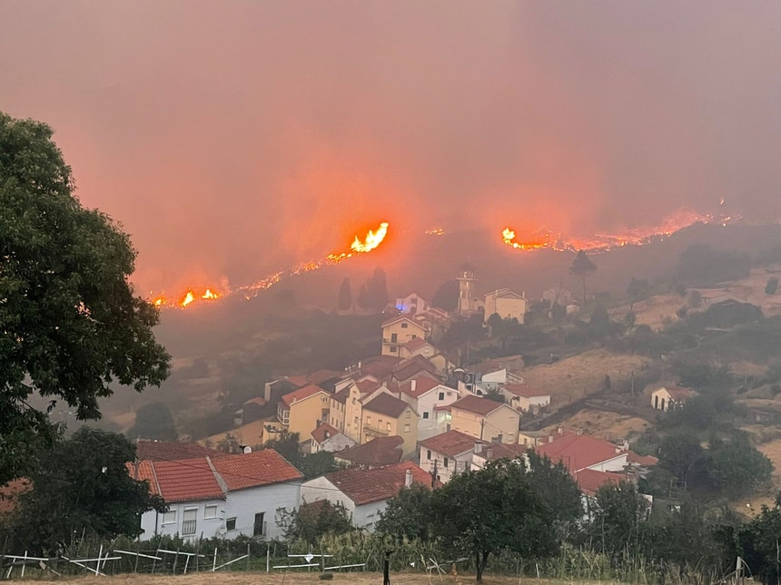 A aldeia de Moura da Serra, em Arganil, ficou cercada pelas chamas. Os bombeiros usaram uma estratégia de fogo tático para defender a Mata da Margaraça, mas o vento acabou por surpreender os operacionais e as chamas descontrolaram-se.