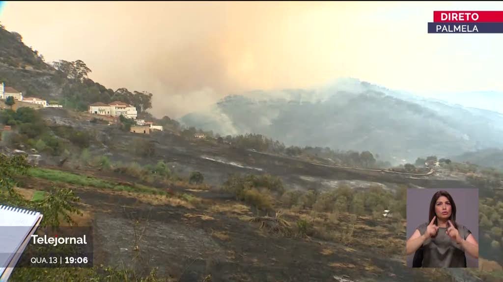 País Fogo em Palmela. Serra de Gaiteiros teve uma reativação Uma bomba de gasolina de Aires encontra-se em perigo. RTP / VER MAIS PUB