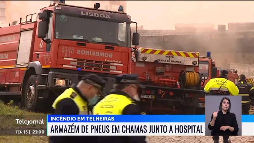O incêndio deflagrou num armazém nas traseiras do Hospital das Forças Armadas. Um trabalhador do armazém ficou ferido.