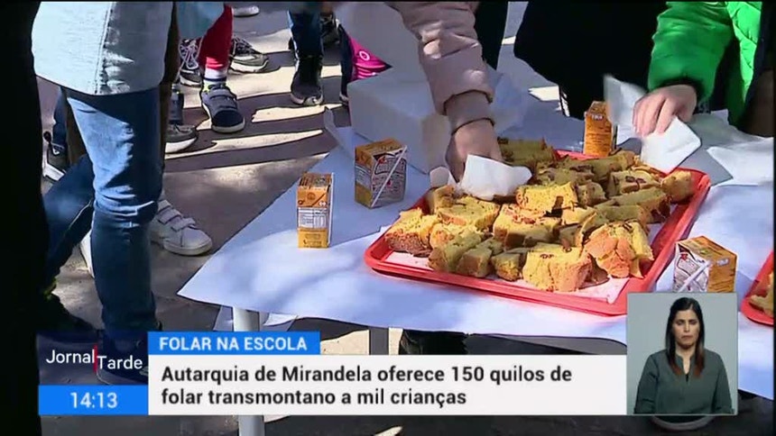 Cento e cinquenta quilos de folar transmontano foram esta manhã distribuídos pelas crianças do ensino pré-escolar e primeiro ciclo de Mirandela. A iniciativa partiu da autarquia que quis manter a tradição de oferecer aos mais novos a iguaria típica da Páscoa.