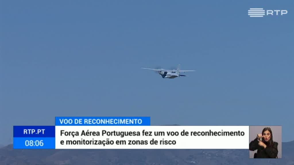A Força Aérea fez um voo de reconhecimento e monitorização em zonas de risco de incêndio. As situações mais preocupantes vivem-se nos distritos de Faro, Santarém, Portalegre e Nisa.