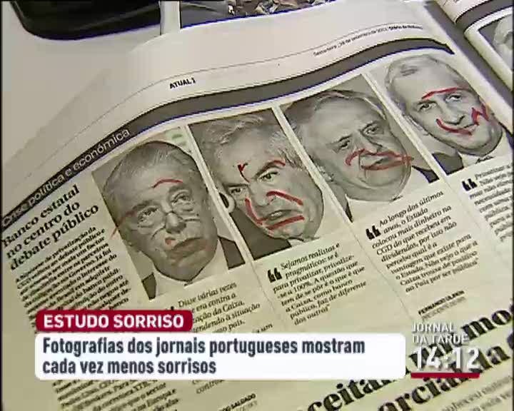 Os rostos que aparecem retratados em fotografia nos jornais diários portugueses são cada vez menos sorridentes. Um estudo agora atualizado analisou mais de trezentas mil fotografias e concluiu que só duas, em cada dez fotografias, mostram pessoas a sorrir de modo evidente.