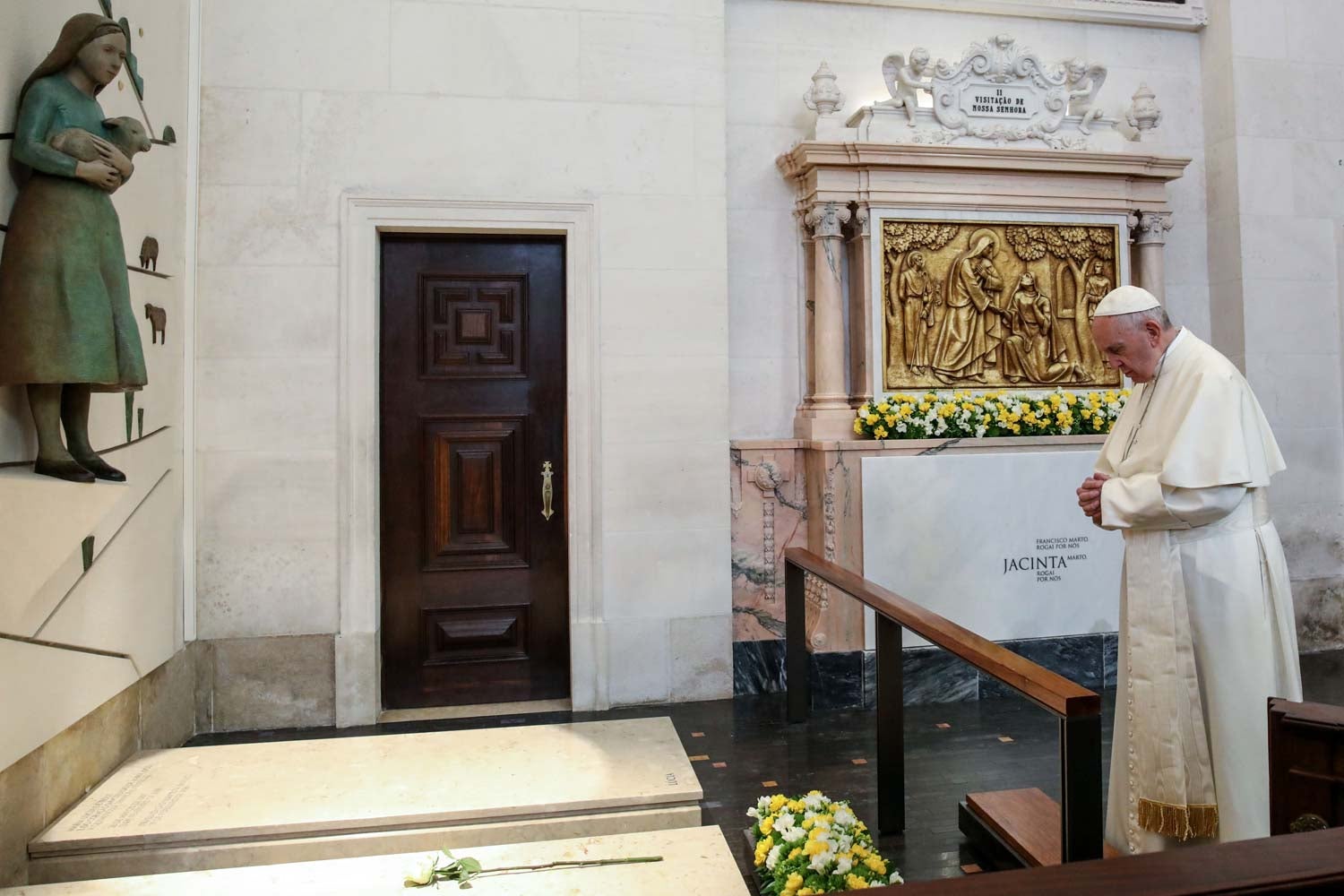 Por cerca de cinco minutos, Francisco esteve recolhido junto ao local onde estão os restos mortais dos dois pastorinhos que irá canonizar dentro de pouco tempo.
