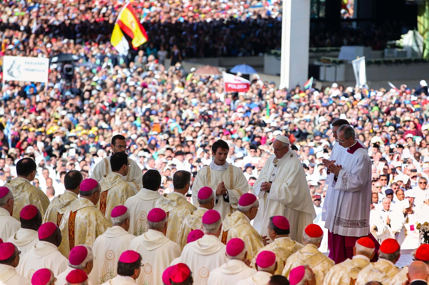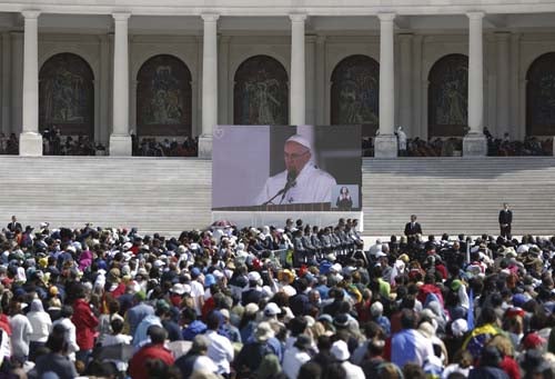 "Percorreremos, assim, todas as rotas, seremos peregrinos de todos os caminhos, derrubaremos todos os muros e venceremos todas as fronteiras, saindo em direção a todas as periferias, aí revelando a justiça e a paz de Deus", afirmou Francisco na sua oração, acrescentando: "Seremos, na alegria do Evangelho, a Igreja vestida de branco, da alvura branqueada no sangue do Cordeiro derramado ainda em todas as guerras que destroem o mundo em que vivemos".