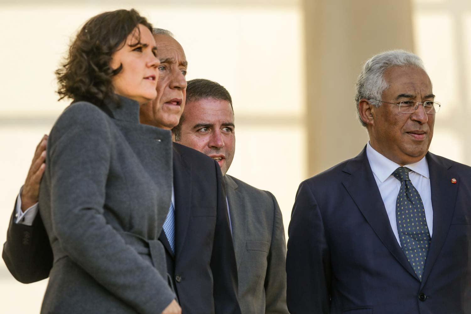 O Presidente da República e membros do Governo, liderados pelo primeiro-ministro António Costa e incluindo o Presidente da Assembleia da República, ferro Rodrigues, e o ministro dos Negócios Estrangeiros, Augusto Santos Silva.