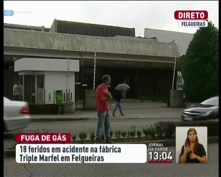 Uma fuga de gás numa fábrica, em Felgueiras, provocou a intoxicação de 18 pessoas. O acidente aconteceu a meio da manhã na linha de produção da Triple Marfel. No local, foram assistidas 9 pessoas e as restantes foram transportadas para os hospitais de Guimarães e Penafiel. Segundo informação recolhida há instantes pela RTP junto dos hospitais, todos os feridos estão em observação e nenhum corre risco de vida. No local estão ainda os bombeiros, a GNR e uma ambulância de Suporte Imediato de Vida.