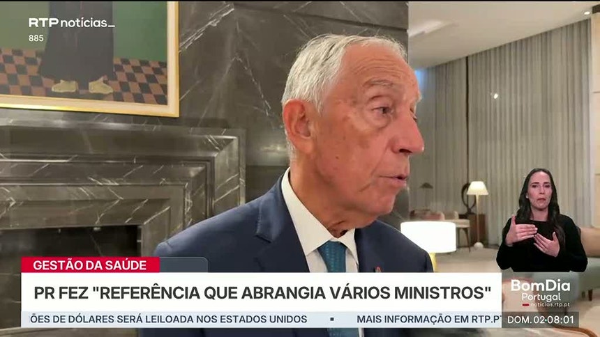 “Eu tive a ocasião de fazer uma referência genérica que eu acho que toda a gente percebeu que tinha a ver com os ministros da Saúde, todos, desde que a situação existe", respondeu o presidente da República aos jornalistas, no sábado à noite, referindo que até deu "o exemplo de um ministro do Governo anterior, ainda com o primeiro-ministro António Costa".