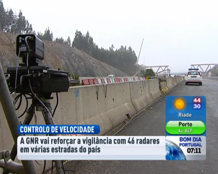 Começou há meia noite uma operação de controlo de velocidade nas principais estradas do país. A GNR está a utilizar 46 radares, fixos e móveis. A operação de prevenção vai decorrer durante 24 horas. Os condutores estão a ser alertados para o controlo de velocidade através dos painéis das autoestradas e por outros painéis colocados nas estradas nacionais. A operação vai decorrer nas vias onde se registam mais acidentes. Envolve um total de 439 elementos da Guarda Republicana.